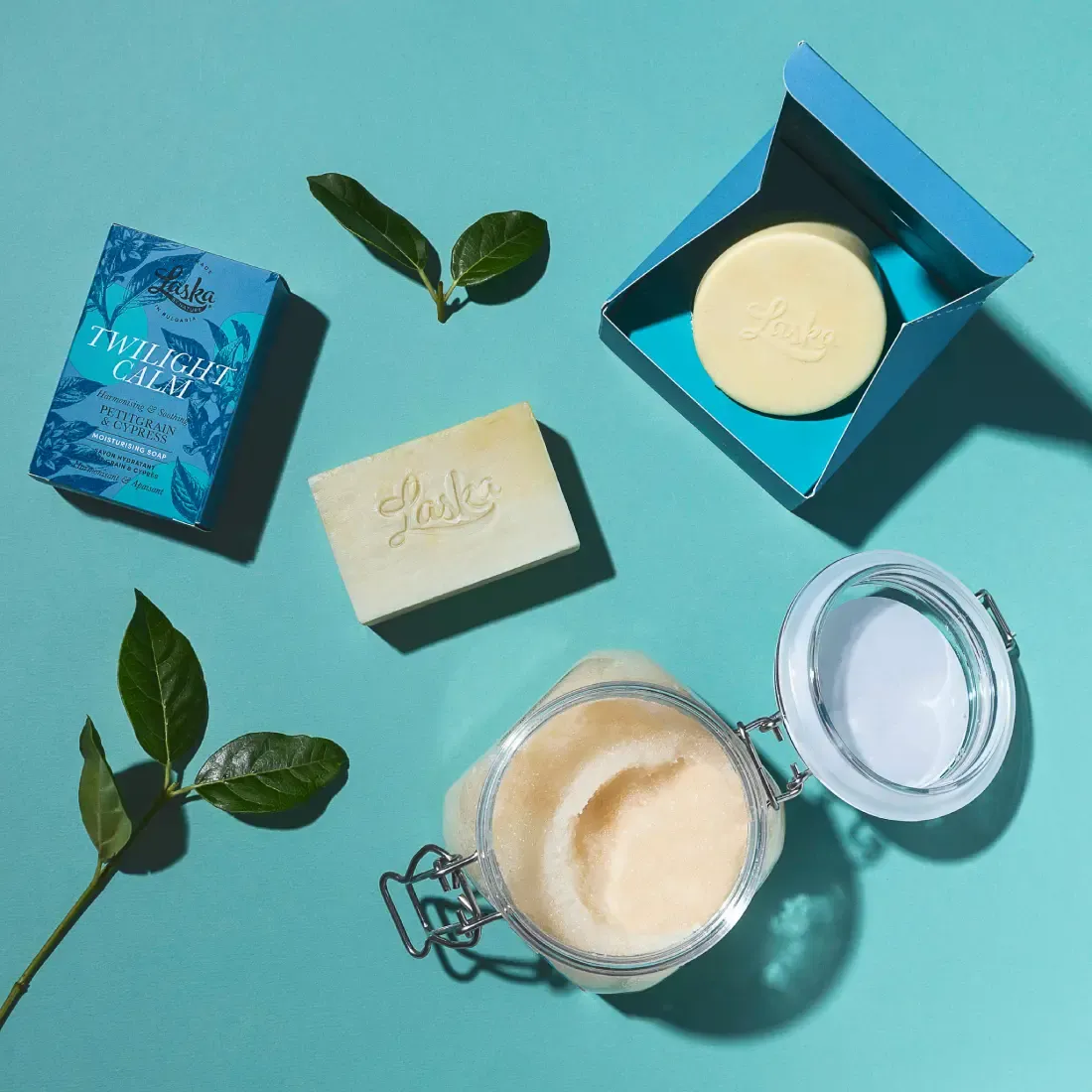 Sodium Olivate, Sodium Cocoate, Sodium Sheabutterate, Sodium Sunflowerseedate, Sodium Cocoa Butterate, Aqua, Glycerin***, Indigofera tinctoria leaf powder, Montmorillonite, Citrus Aurantium Leaf Oil*, Eucalyptus Citriodora Oil*, Cupressus Sempervirens Oil*, Citral**, Linalool**, Limonene**, Geraniol**