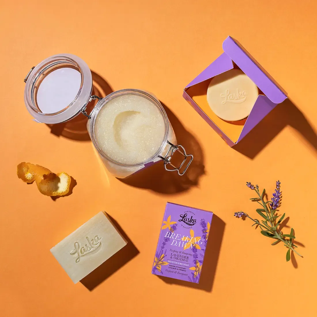 Sucrose, Helianthus Annuus (Sunflower) Seed Oil, Polyglyceryl-3 Palmitate, Glyceryl Stearate, Mangifera Indica (Mango) Seed Butter, Lavandula Angustifolia Oil*, Citrus Aurantium Dulcis Peel Oil*, Cedrus Deodara Wood Oil*, Melaleuca Viridiflora Leaf Oil*, Alpha Tocopherol (Vitamin E), Limonene**, Linalool**